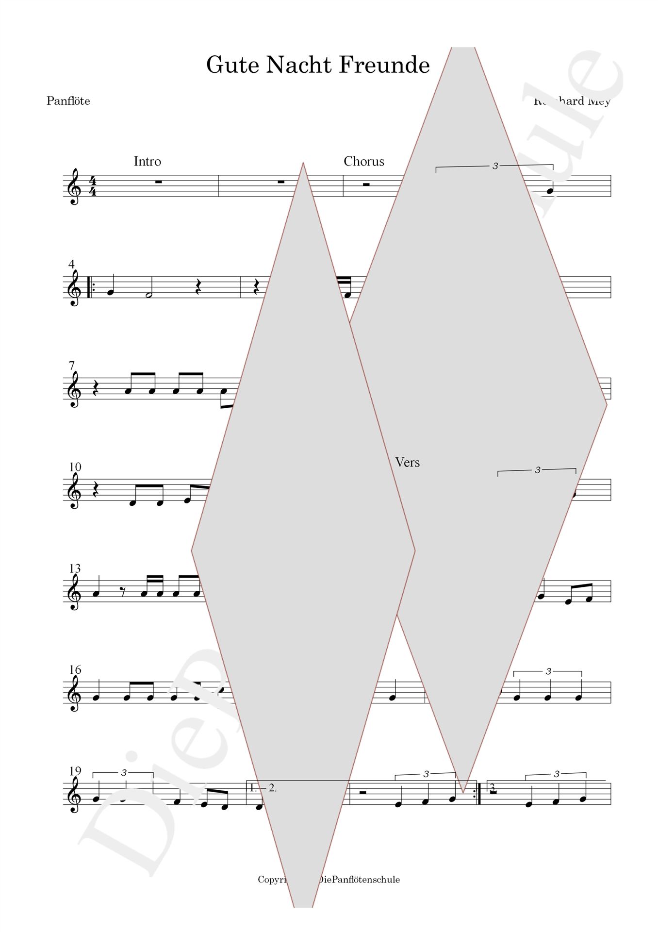 In C-Dur. kann auch mit der Altpanflöte gespielt werden. ----- Einzeltitel aus der Notenheft-Reihe "Melodien für Panflöte", Für Panflöte in C-Dur, Pdf-Noten, Playalong Mp3 Audio ohne Panflötenstimme, Playback Mp3 Audio mit Panflötenstimme. Aus technischen Gründen sind die Panflötenstimmen mit einer gesampelten (elektronisch aufgenommenen) Panflöte produziert worden, um die Lernvideos mit der virtuellen Panflöte erstellen zu können. Mehr Infos weiter unten. Die Mp3 Versionen sind professionelle Produktionen für einen Live-Auftritt. Auch für Karaoke verwendbar.